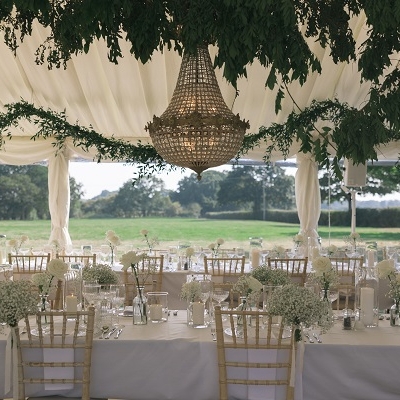 | A | Georgie Porter says: Firstly, be aware of the elements, Britain is notoriously unpredictable, and having a marquee/ tipi or pagoda can offer a lovely cover from both the sun and the rain. You can also dress your cover with beautiful flowers or lighting. Seating is a must! Having sofa areas with low tables or even a more rustic approach using haybales gives your guests the option to sit down. Use lighting to enclose the space, this is very commonly seen in Italian weddings using festoon lighting to create a sparkling skyline, not only adds an aesthetic touch it also lights up the event at night. You need an area for the bar and food; creating space for people to enjoy the food and drinks on high tables with stools is very popular. And finally, a dancefloor! Regardless of if you're outside, having an area with a raised stand for the band and outlining the dancefloor (with either specialised portable flooring or a simple makeshift lantern outline), your guests will gravitate towards that space. |