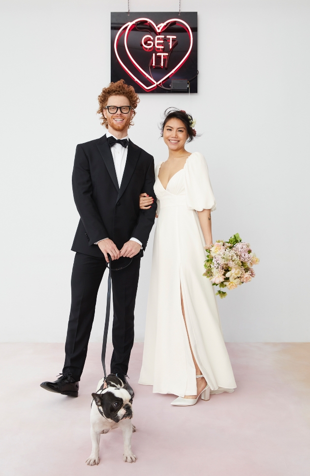 Why not consider a sharply tailored bridal suit like this one from https://www.temperleylondon.com/gb