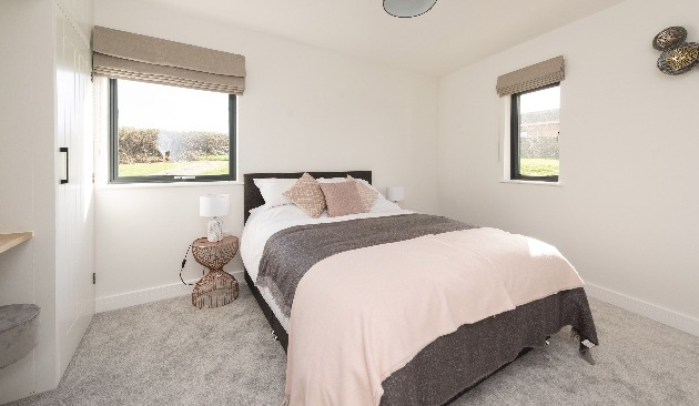 Bramble is the smallest of three eco retreats constructed in 2020 and boasts a ground source heat pump, underfloor heating, bi-folding doors and cosy wood burning stove. The light and spacious, open-plan accommodation is all on the ground floor which leads out via the bi-folding doors to a sunny terrace and garden including your very own wood-fired hot tub.