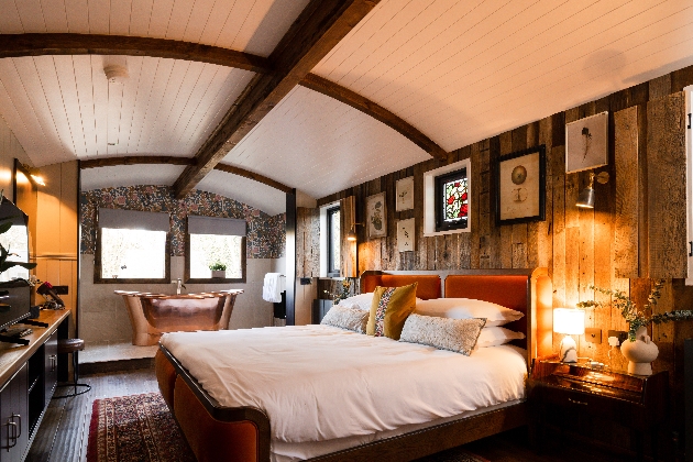 If a secluded, rustic, woodland escape is more your vibe the Shepherd's Hut Suite is the place for you. Nestled in Galgorm Wood with the cascading River running alongside it, it's luxuriously appointed with a lounge, mini kitchen, and bathroom with shower room and free-standing bath. But the stand-out features, without doubt, are your very own sauna and hot tub on the terrace. Enjoy a soak in the warm waters as you watch the sun set and raise a glass to yourselves, the newlyweds.