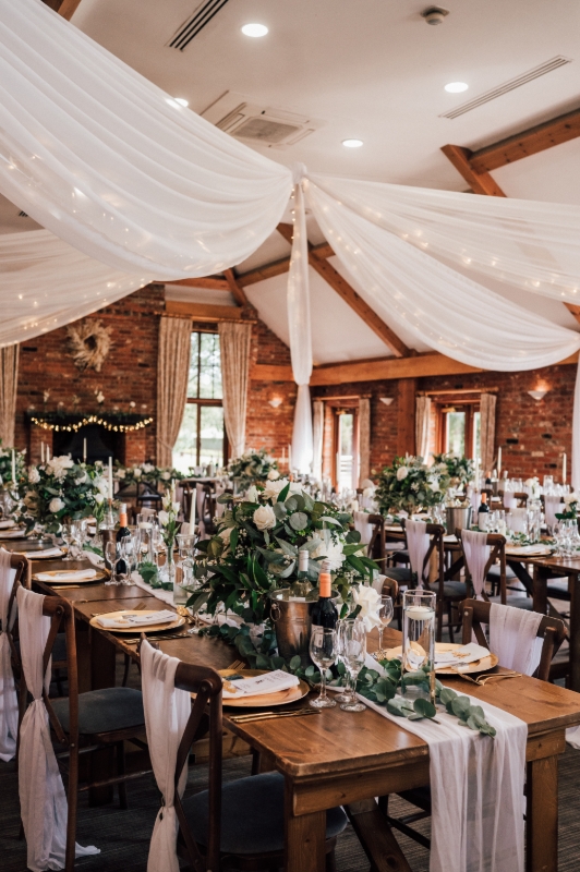 Inside you will find exposed brickwork, rustic oak beams and open fireplaces, creating the perfect authentic barn wedding venue with a modern twist.