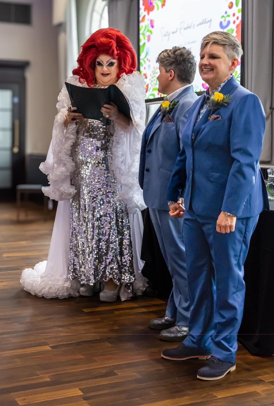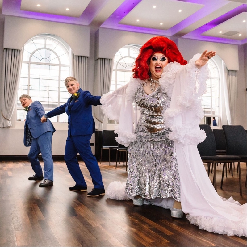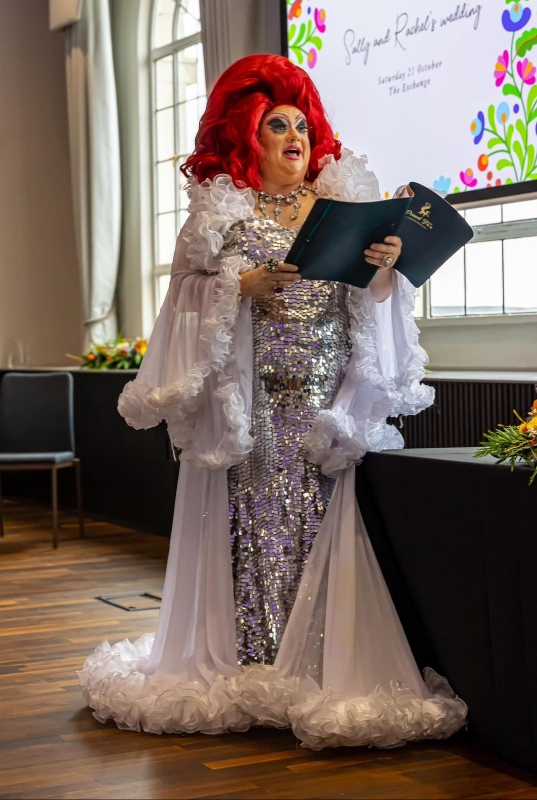 As well as maybe being the only accredited drag queen celebrant currently operating and creating weddings in the UK I am also a qualified and fully registered NRCPD, British Sign Language Interpreter Pg Dip.