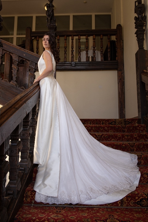 Model Chloe Frenay from Maidstone gathered together a team of talented suppliers to create this wonderful vintage-themed bridal shoot. The venue chosen for the backdrop was the gorgeous Broome Park Hotel in Canterbury. The rather grand staircase here certainly makes for a dramatic bridal entrance.