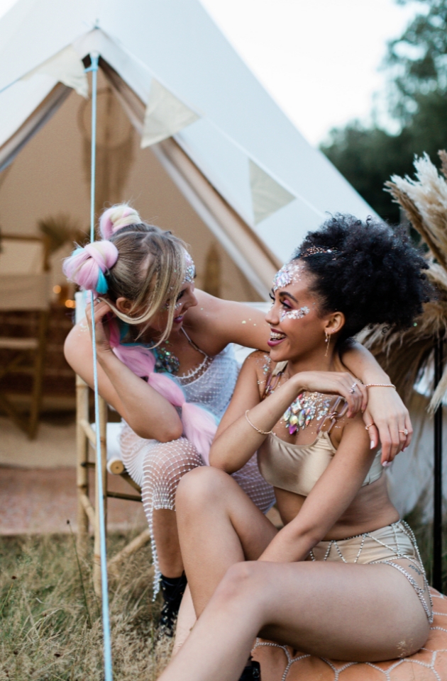 If you loved our Woodland Wonder shoot in the Jul/Aug issue of Your Kent Wedding magazine, here's some more! While on location, the team also shot another angle and created a festival hen party vibe with a twist! The Milkshake Kisses workshop brought Coachella to Kent with glamping tents, girls in festival outfits, smoke bombs and plenty of glitter. This side of the shoot will definitely bring all of those summer feels and give us all hope of some sunshine in the weeks before autumn creeps around the corner!