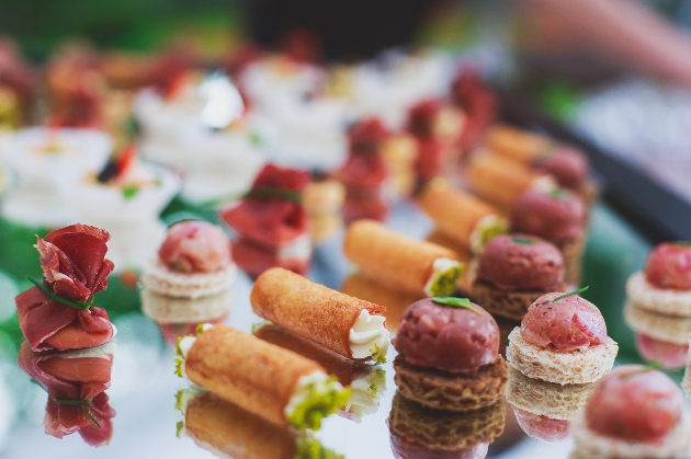 Have canapés or bites for your arrival or drinks reception. Wedding breakfasts are usually later than lunchtime so it helps keep people going. Be adventurous if you want to – it's your wedding so if you don't want to offer chicken to everyone that's up to you. And finally, eat the seasons. Choose a menu that showcases local ingredients, it'll taste delicious and is better for the environment.