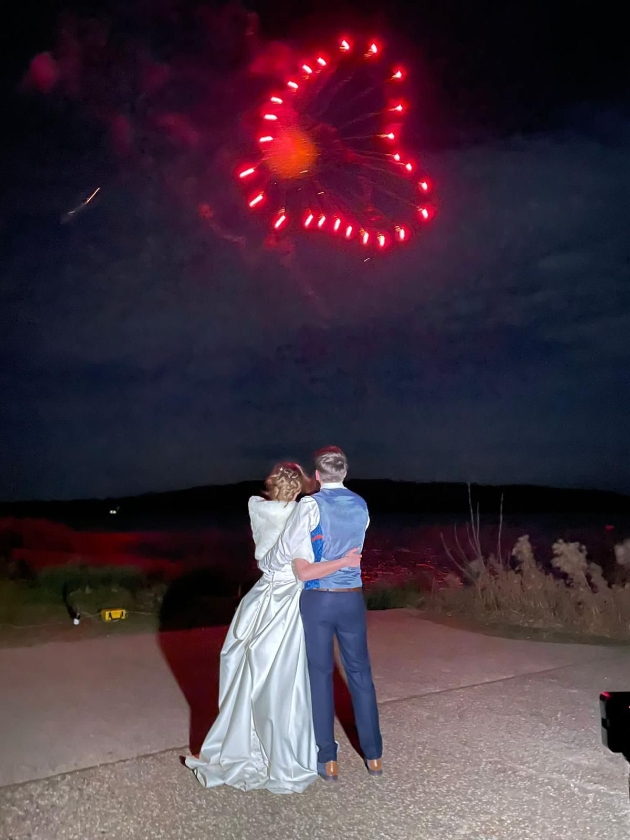 How special would it be to literally write your love across the sky on your wedding day? Well, now you can with AJ Pyrotechnics’ amazing heart fireworks. The company’s Adrian Walters says, “They each spin out of a firing tube at hundreds of miles per hour and it really is luck that they break the right way around! For the one in the picture, I angled it slightly into the wind and crossed my fingers!”