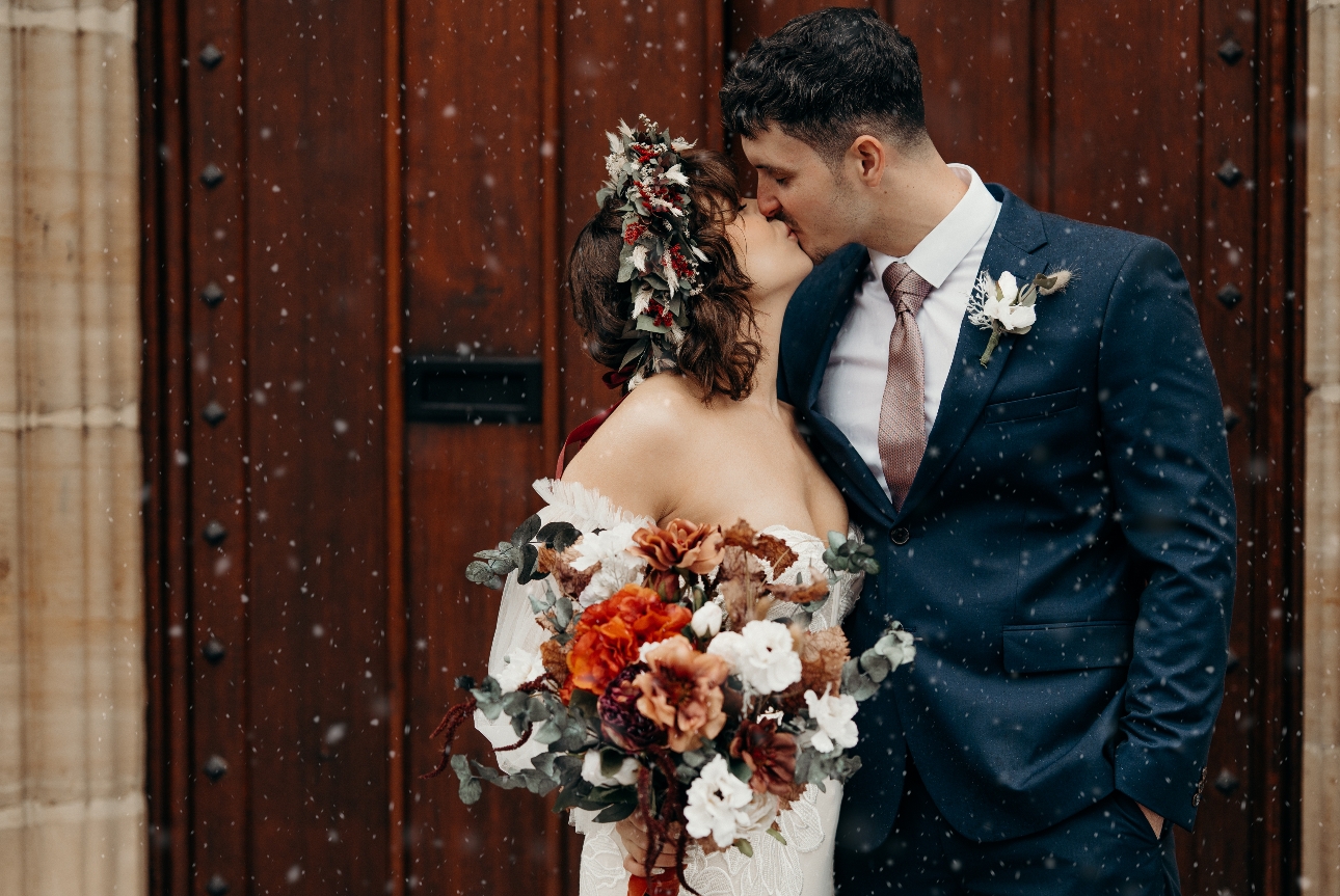 "For our styled shoot in Tonbridge we wanted to showcase a warm winter bohemian feel, we were lucky enough to capture the last of the snow, which made the day even more magical. Flower crowns and pampas archways made for a beautiful set up umongst the stunning grounds of tonbridge school's wedding venue.
