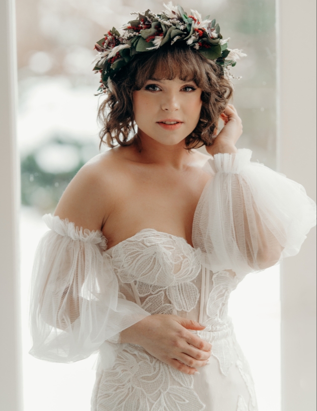 "Felicity Westmacott designed and made a bespoke wedding dress for the styled editorial shoot and with the make-up artist and vintage headpeices, it all came together wonderfully, it was a truley magical day.
