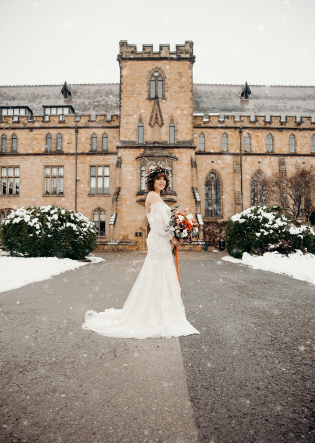 Located close to the Kent/Sussex border Charlotte and Callum from C&C Imagery decided to put together a shoot featuring the work of fabulous local suppliers from both counties. Showcasing the stunning Tonbridge School and its glorious grounds, the team set about creating two shoots together; one with a warm winter boho feel, capturing the last of the snow, and the other Hollywood glam inspired.