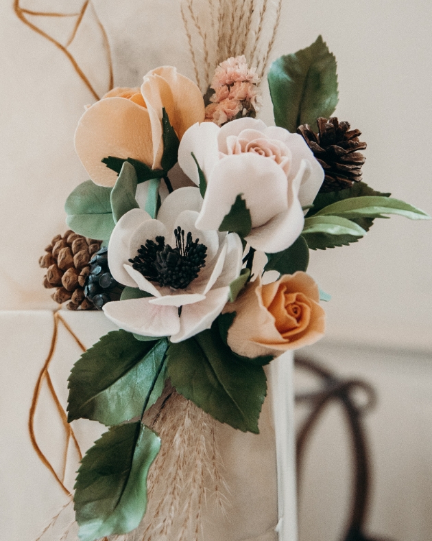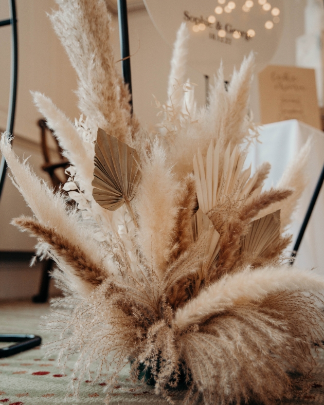 "When a Touch of Kent was approched to join this shoot, we saw the moodboards and had instant inspiration. We decided to use our pampas arch as it featured soft, warm colours, still very much on trend for 2023. We styled this with our dome-shaped acrylic sign incorporating neutral tones of the shoot, and added some luxury with the gold mirror-effect vinyl.