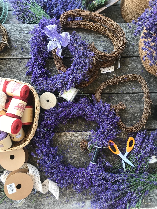 Of the five different varieties which the farm grows for essential oil production, the earliest flowering lavender - ‘Folgate’ - is the favourite for cut fresh bunches and for drying. With its dense heads of deep purple-blue flowers, it’s perfect for making lavender hearts, garlands or table-centre stooks, adding in to bride’s bouquets or buttonholes or simply hanging as bunches on chair backs or pew ends. This is available from mid-June until early July.