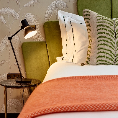 To enhance the ambience further, blue uplighters have been installed to accentuate the marquee’s interior walls, casting an inviting glow upon the surroundings. Meanwhile, the living walls bring a touch of greenery, creating a charming and immersive environment.