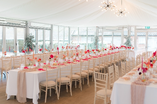 Cave Hotel and Golf Resort in Faversham has announced the completion of its marquee wedding venue’s refurbishment. With an eye for style and a commitment to creating unique experiences, the standard marquee has been transformed into a breathtaking space that blends style with a touch of whimsy. The centrepiece of the refurbishment is the addition of the